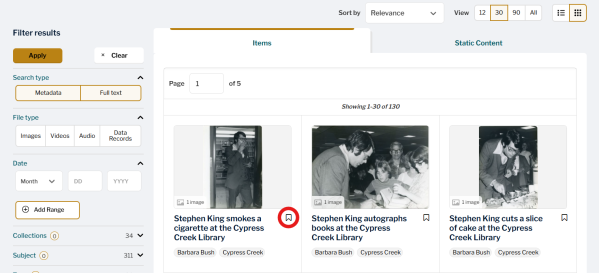 Use the My Account 'SaveSearch' feature to record your search parameters and easily rerun your query at a later date. You can find the Save Search feature in the upper right-hand corner of any current search criteria box. This appears above an Assets List after a search is applied.